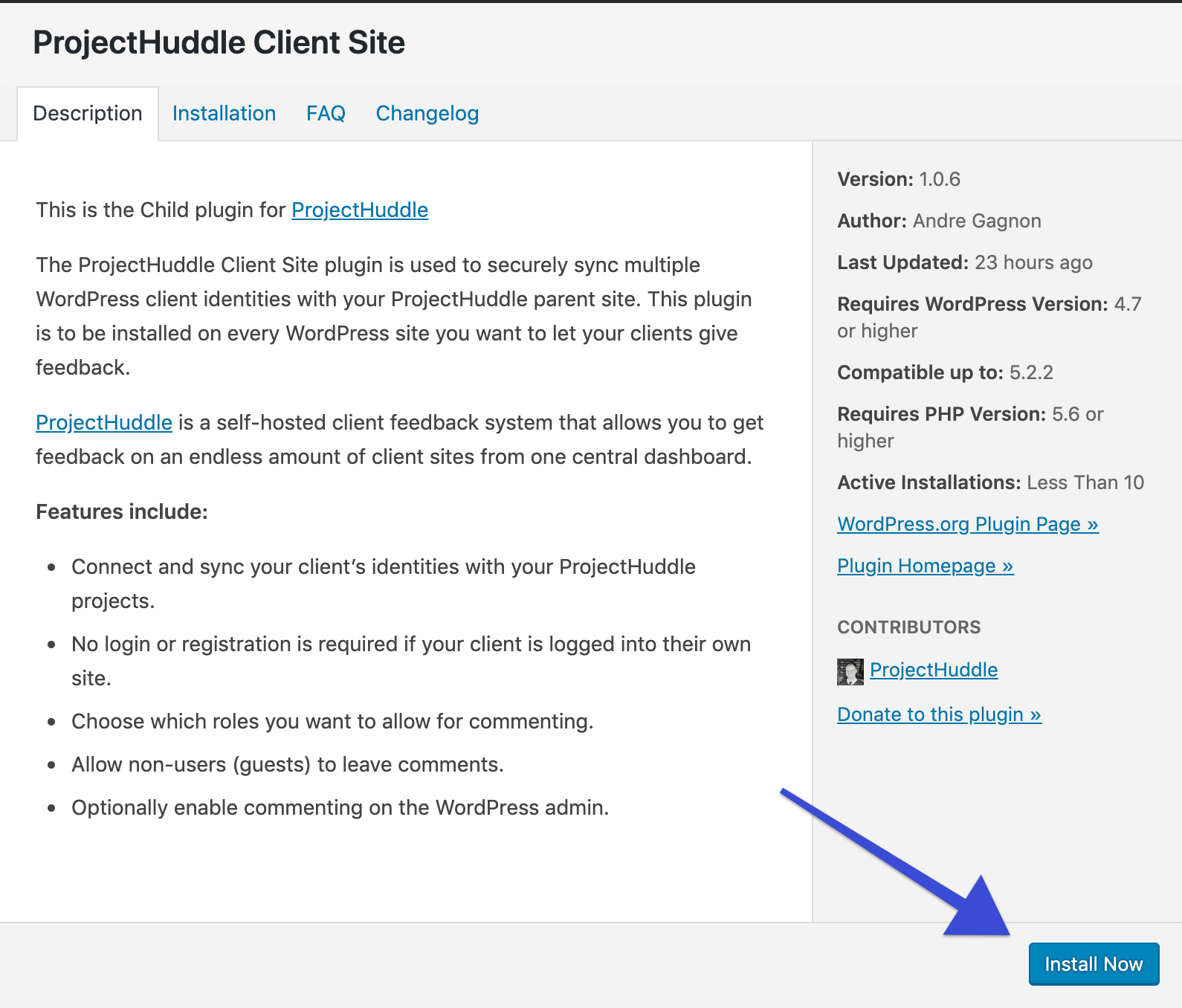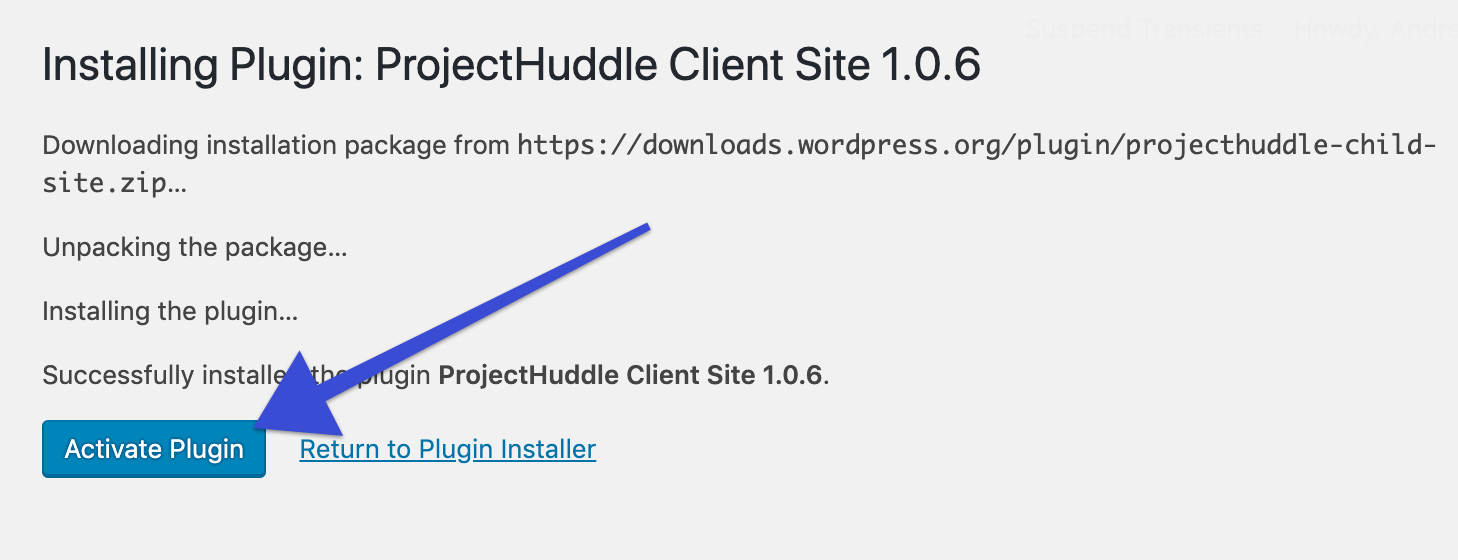 5. Click the button to install the Client Site plugin.