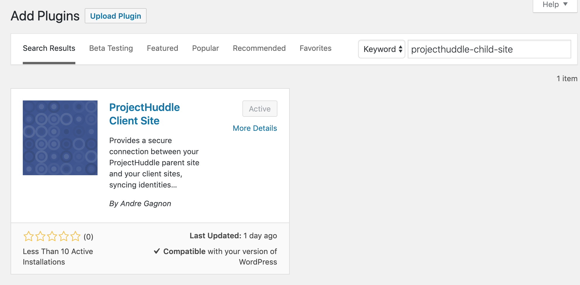 This will open up your child site in a new tab to install the child site plugin. If you cannot see the plugin on the plugins search page, navigate to Plugins >Add New on your client’s site and search for “SureFeedback Client Site”.