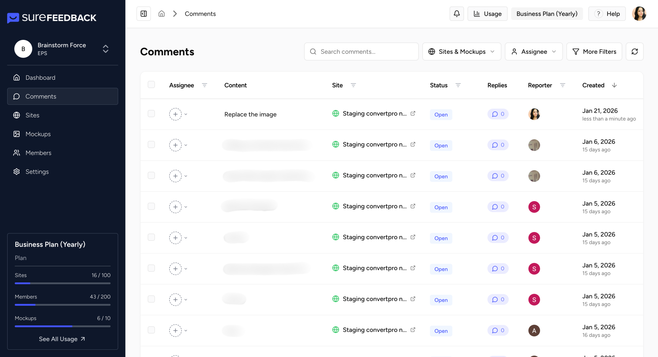 • This opens your site with the SureFeedback widget active and ready to collect comments.
