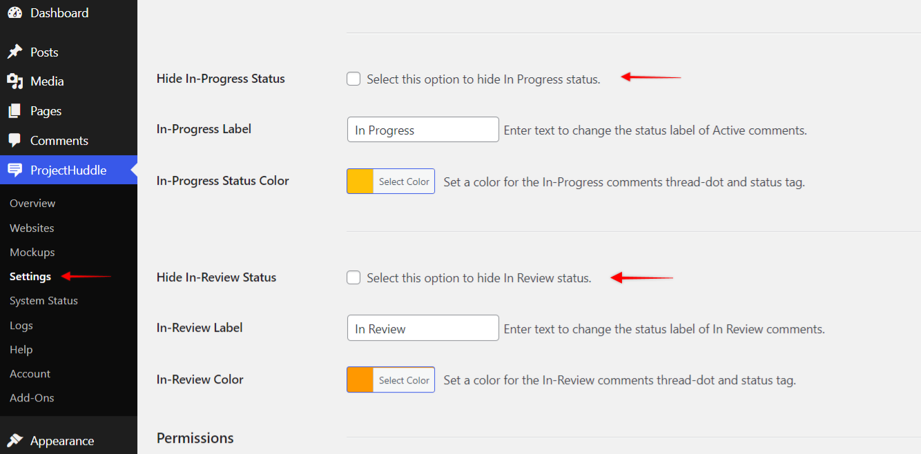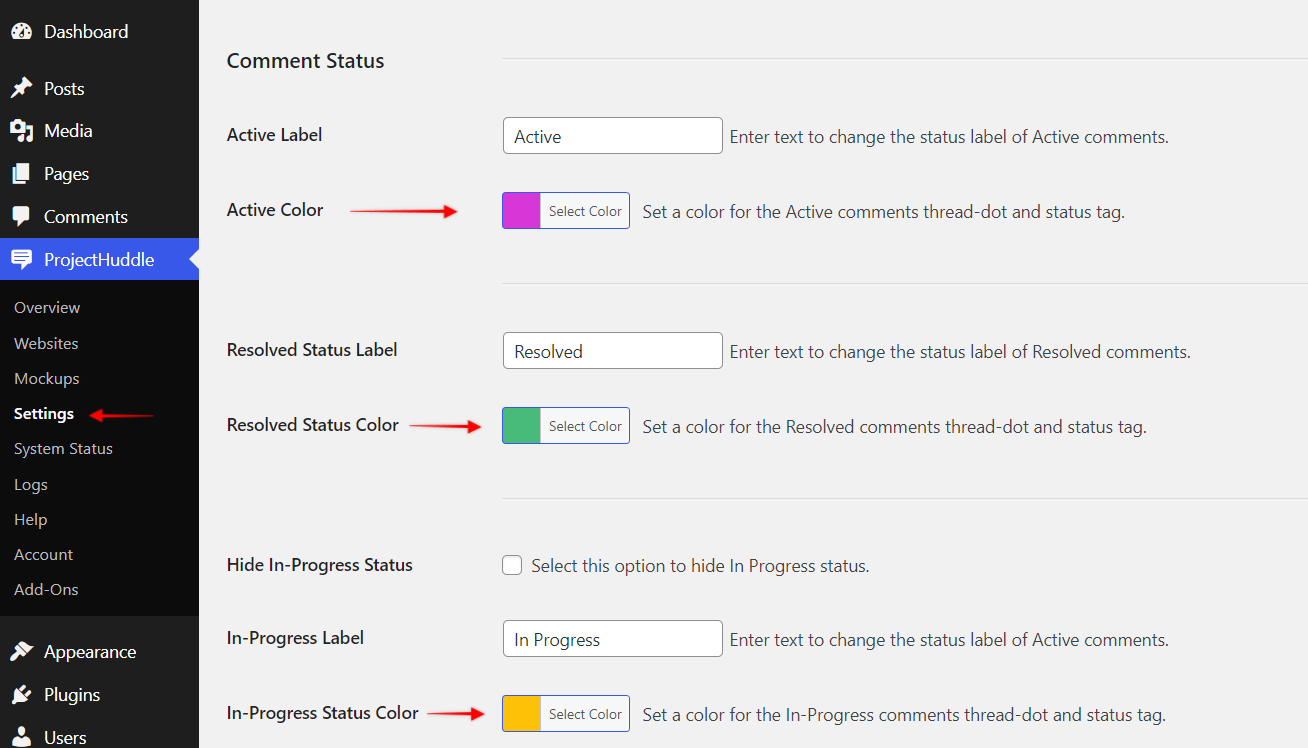 You can control who can change the status of the comments from the SureFeedback > Settings > Comments tab > Comment Status