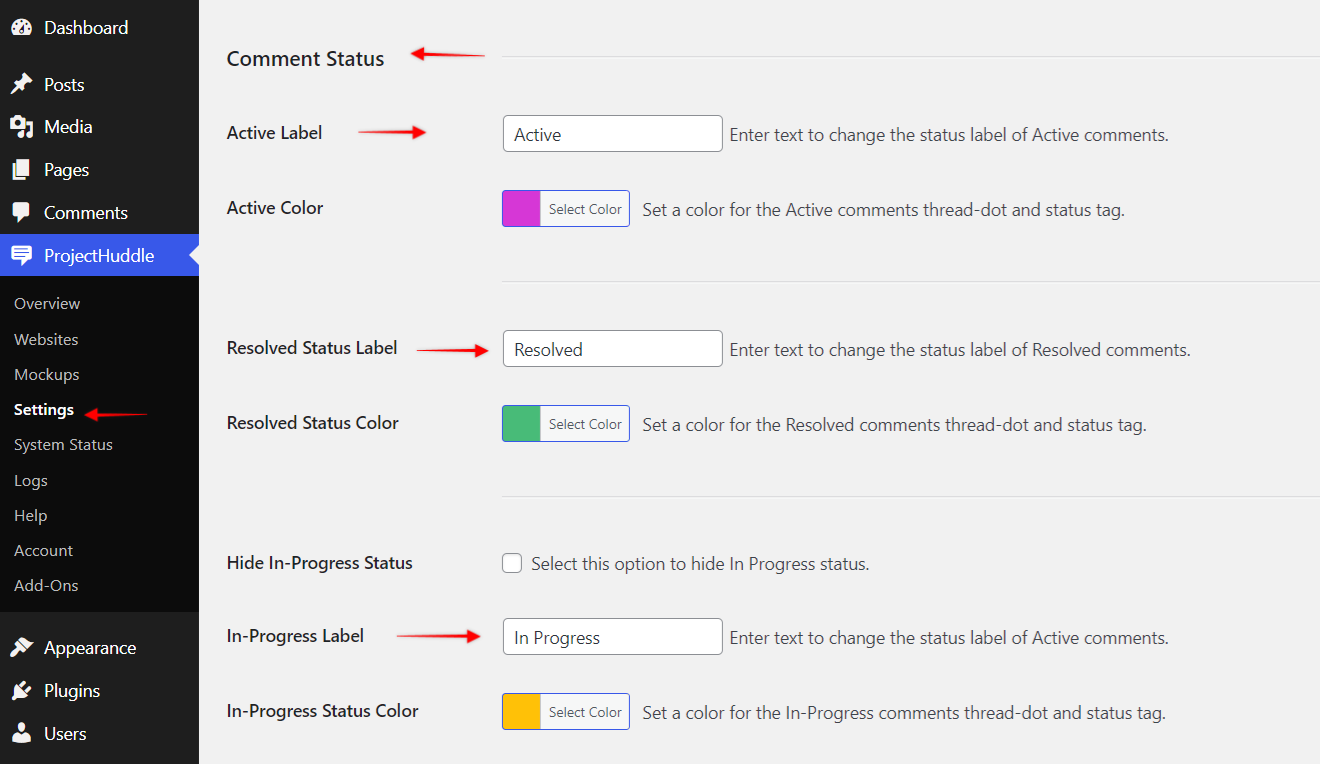 - Customize the status label for the above comments options
