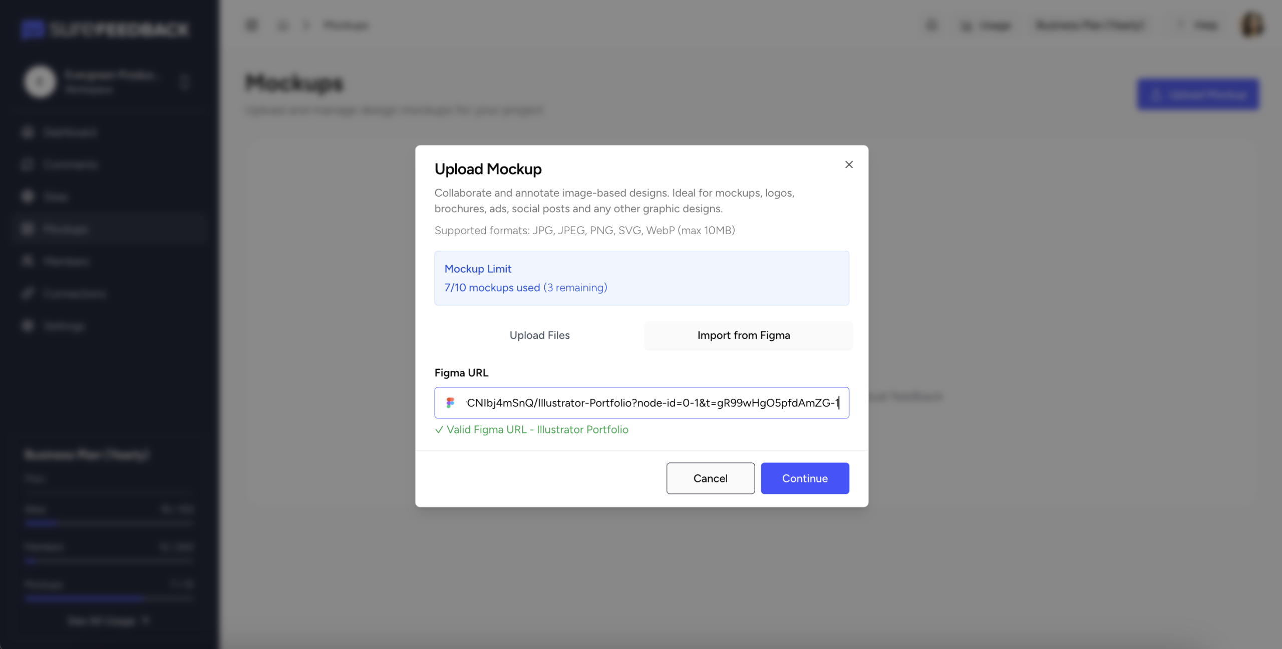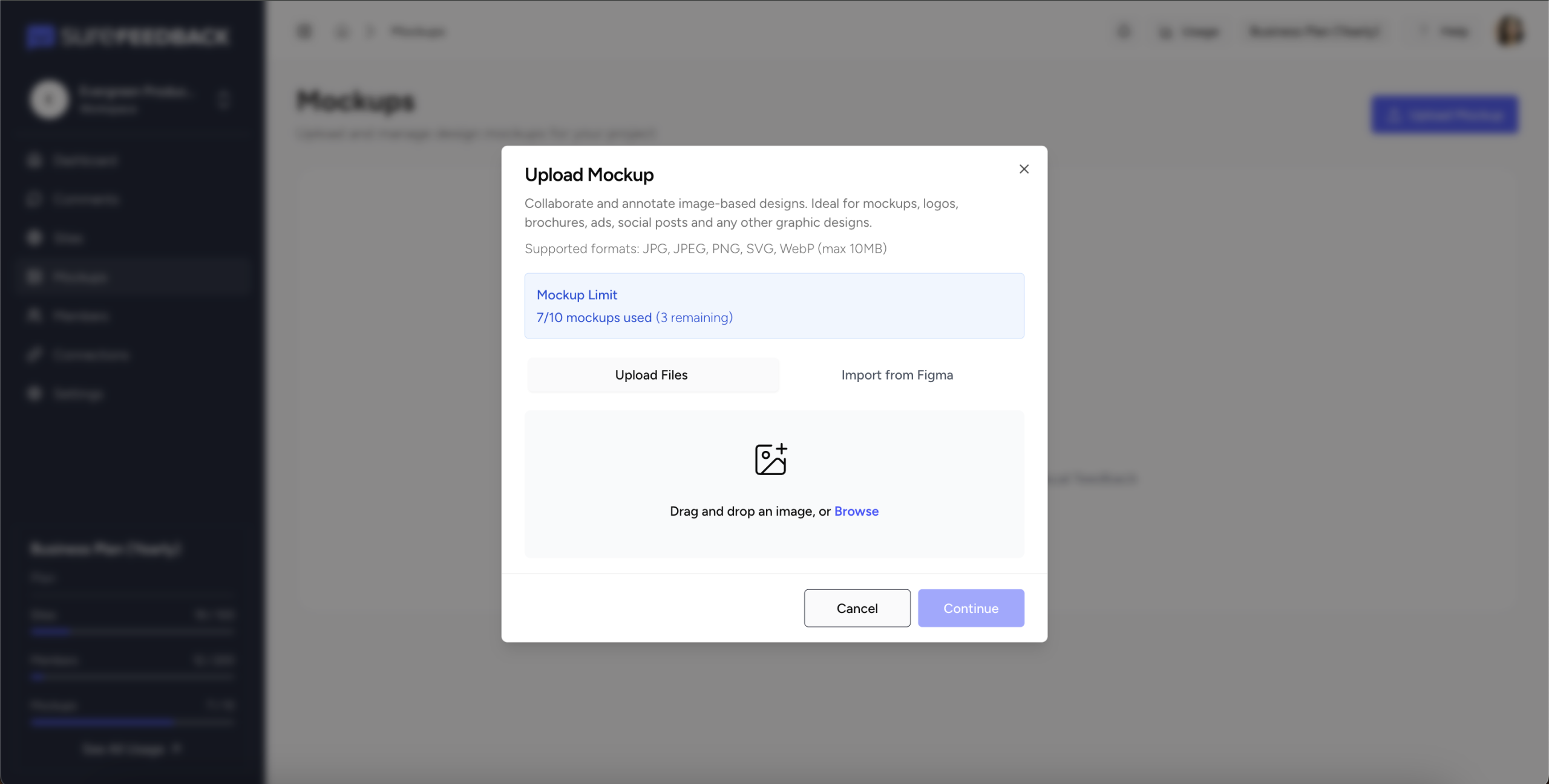 Mockups let you upload static design files or import artboards from Figma so you can gather comments without sharing a live website.