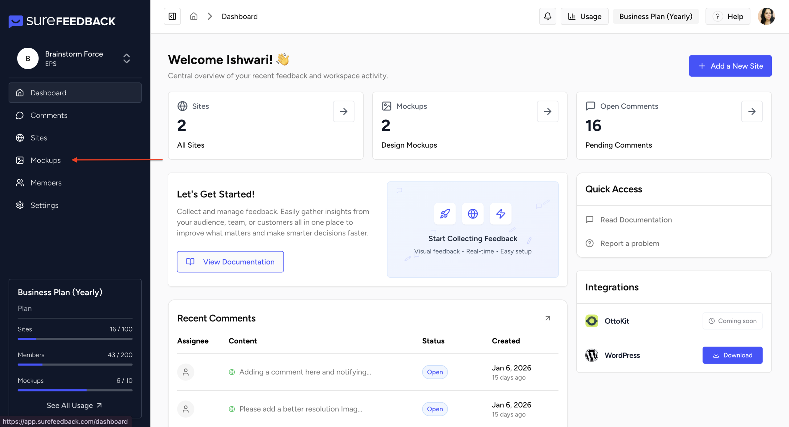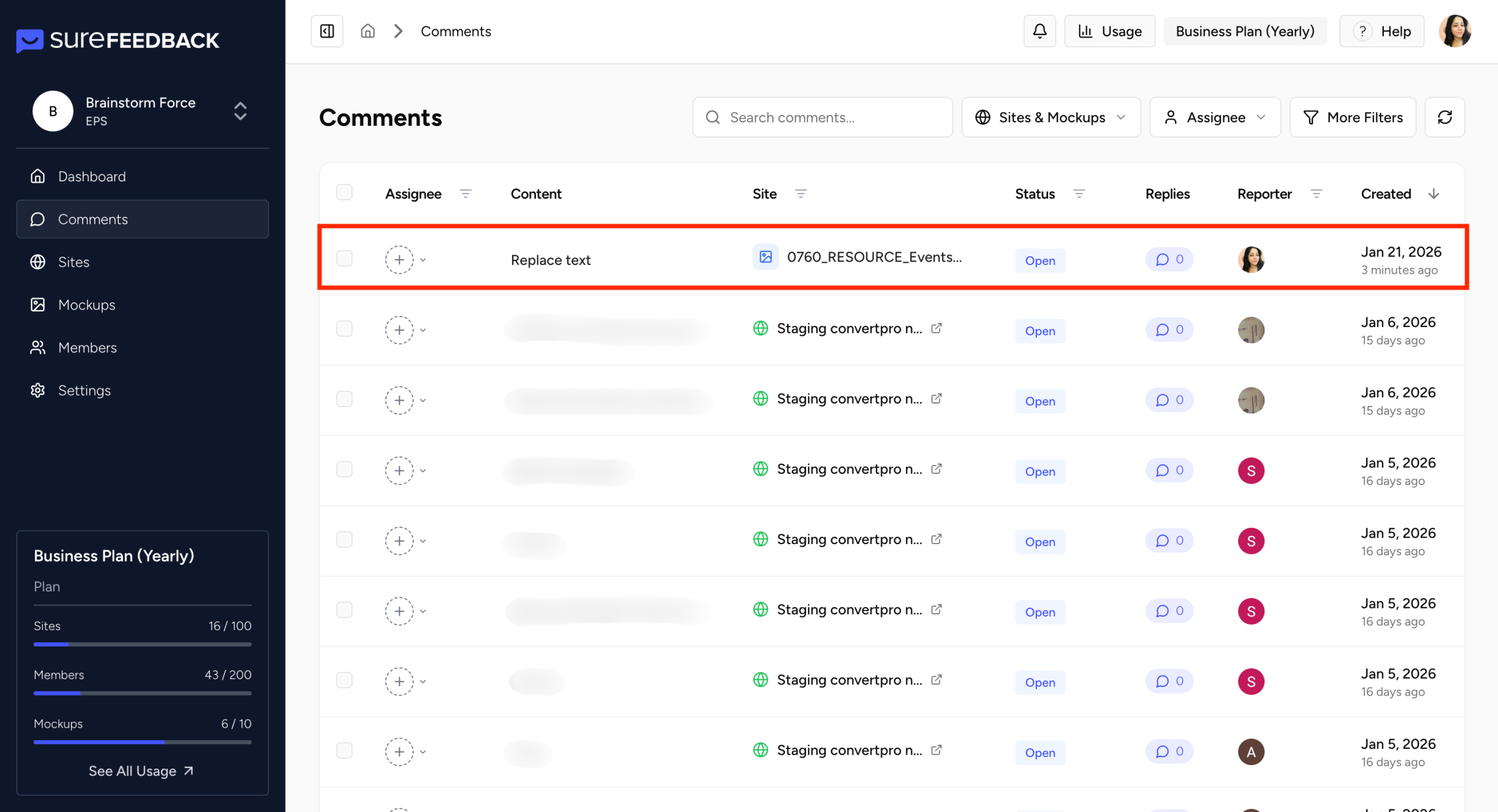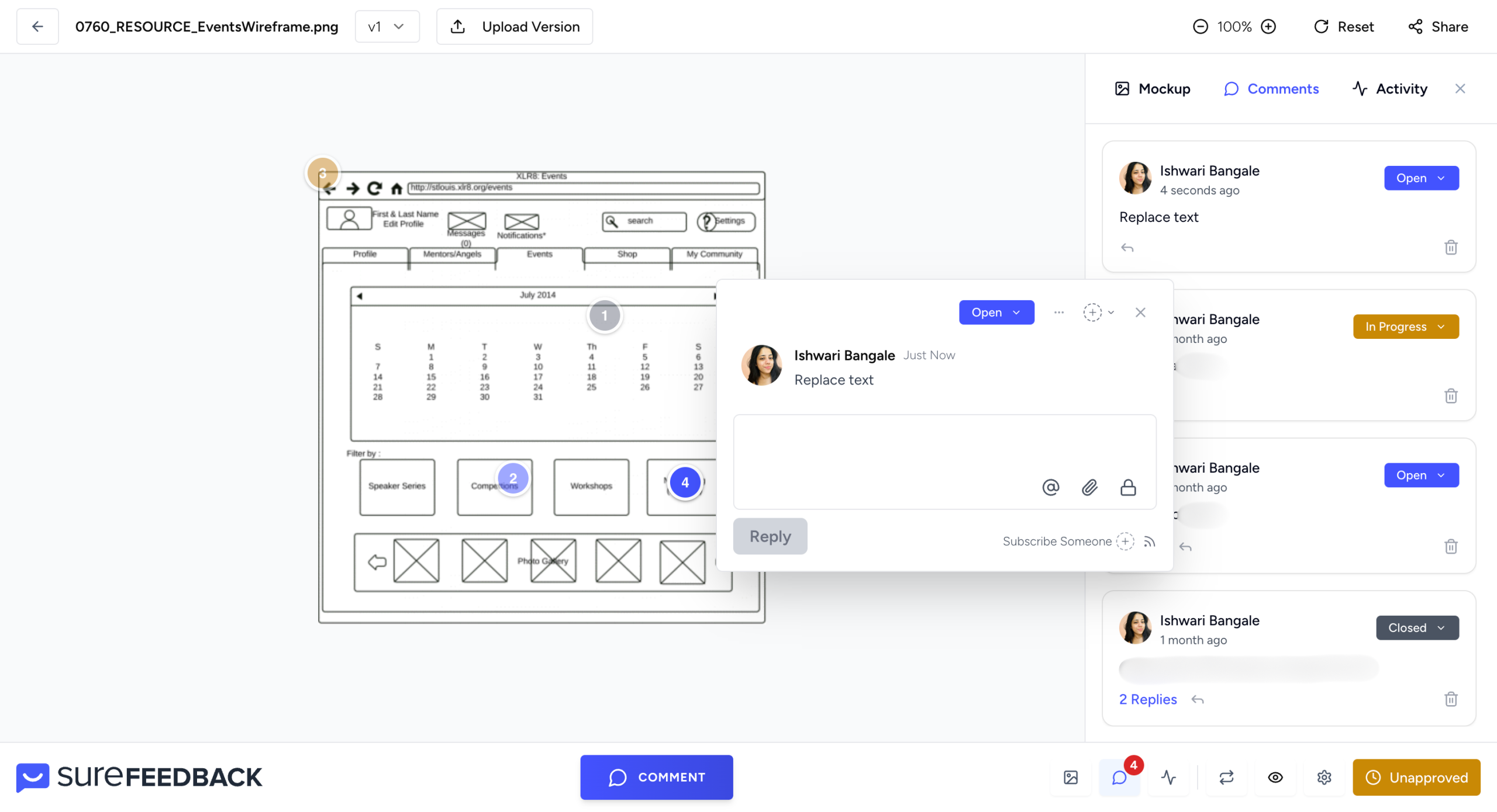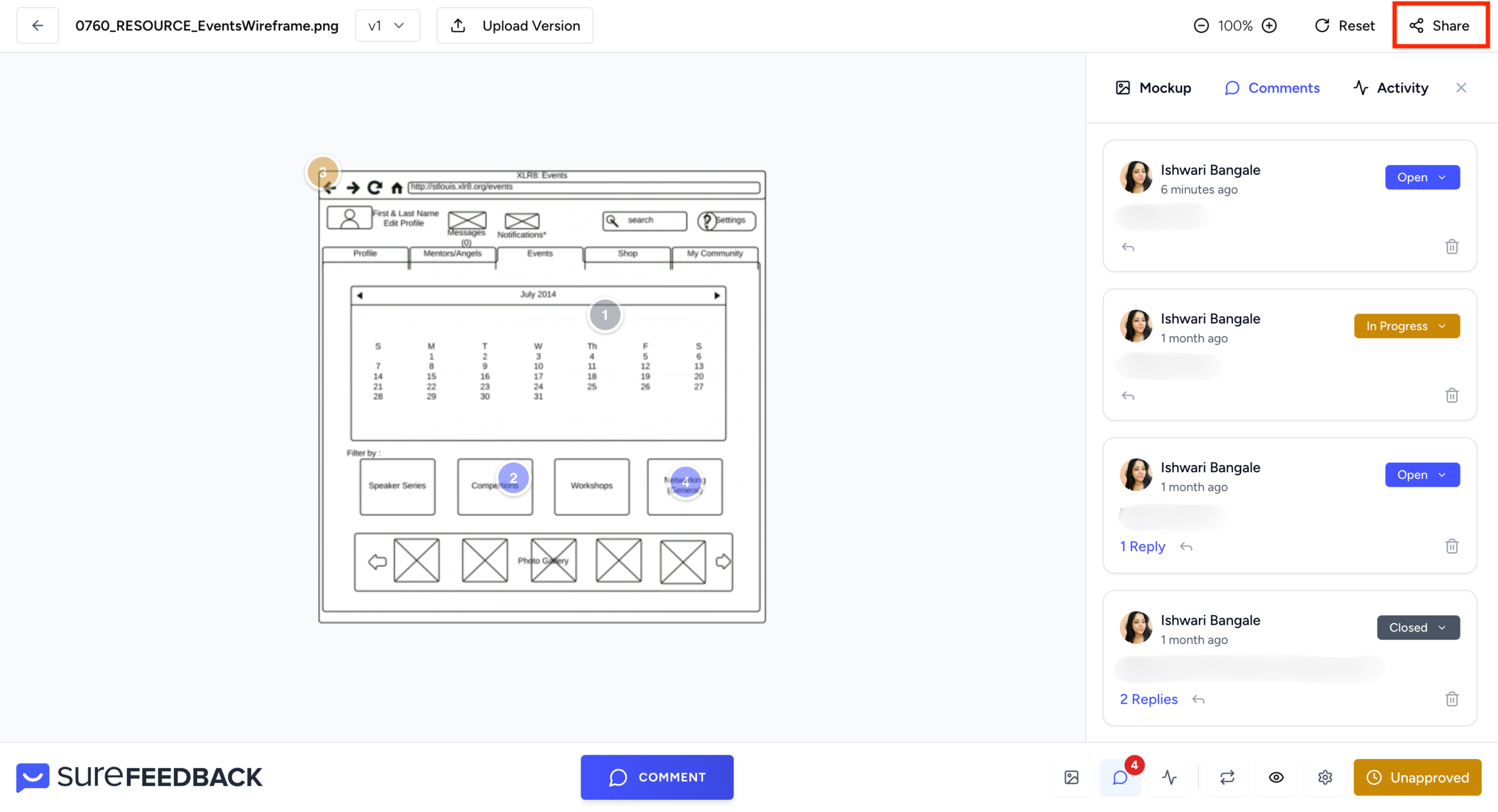 SureFeedback allows you to upload mockups, gather comments directly on the design, and collaborate in real time. Every piece of feedback stays organized, visual, and easy to act on.