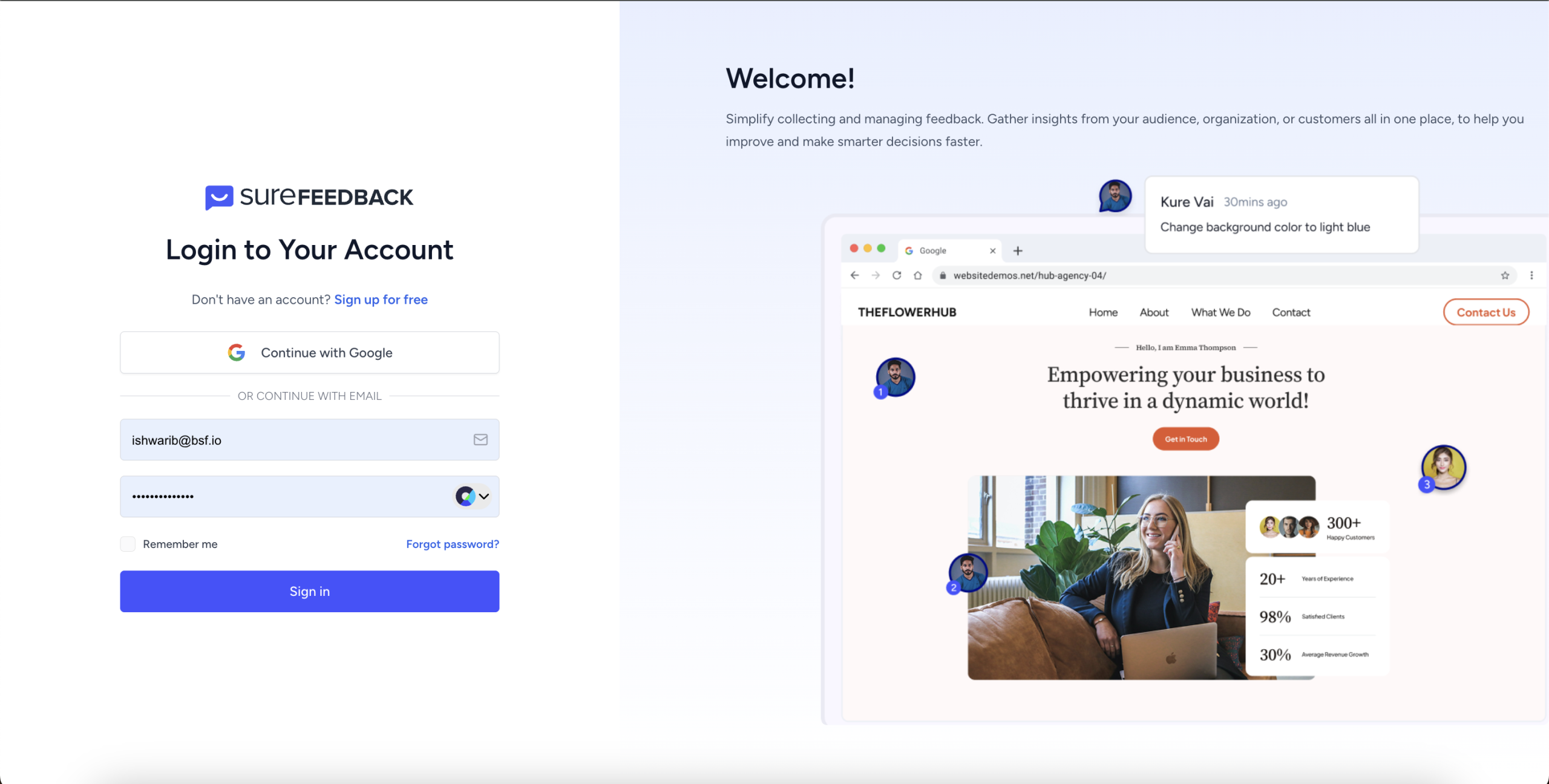 If you encounter any issues or have questions, we’re here to help. Simply reach out through our contact page: https://surefeedback.com/contact-us/