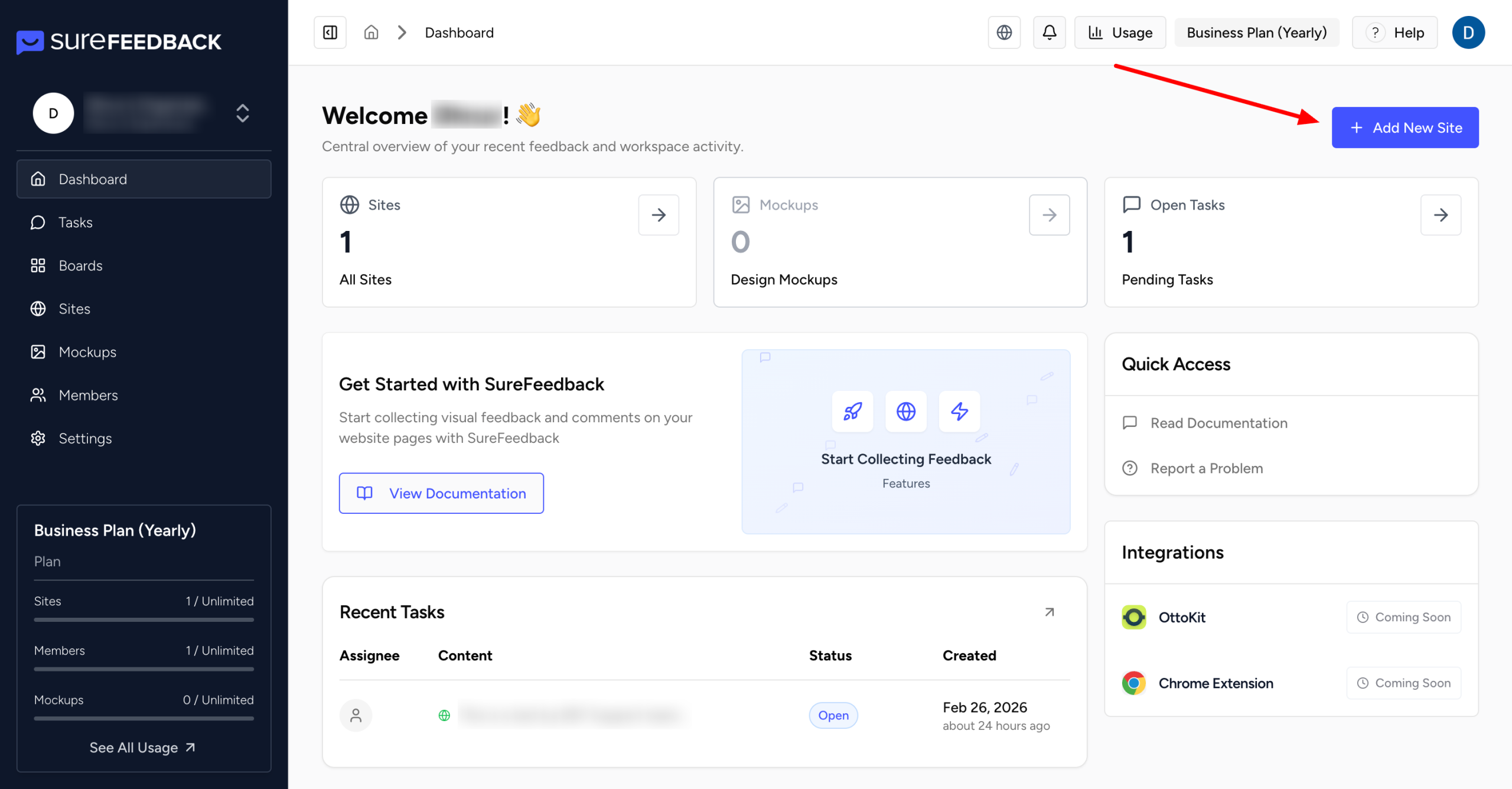 Once the connection is complete, your site will appear in your SureFeedback dashboard and is ready for feedback.